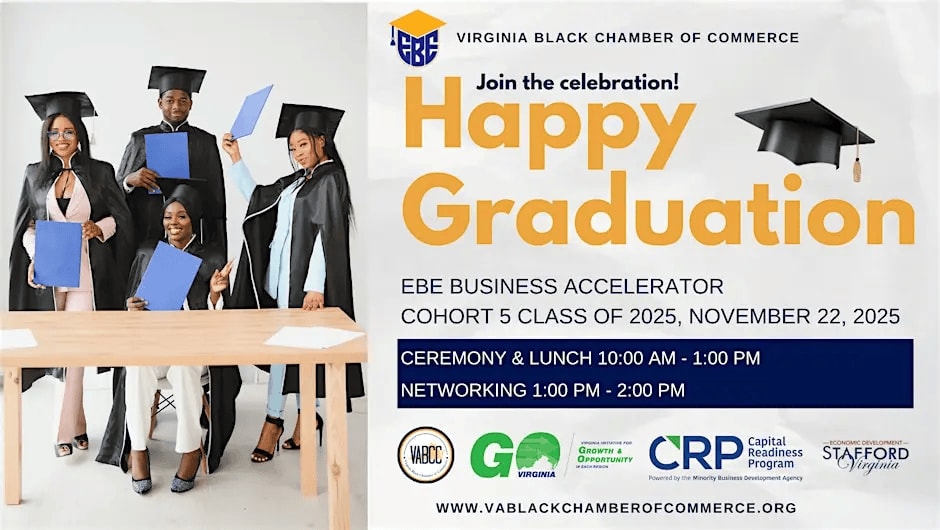 Join us as we celebrate the graduation of Cohort 6 and Alumni Reunion from the Virginia Black Chamber of Commerce Business Accelerator.