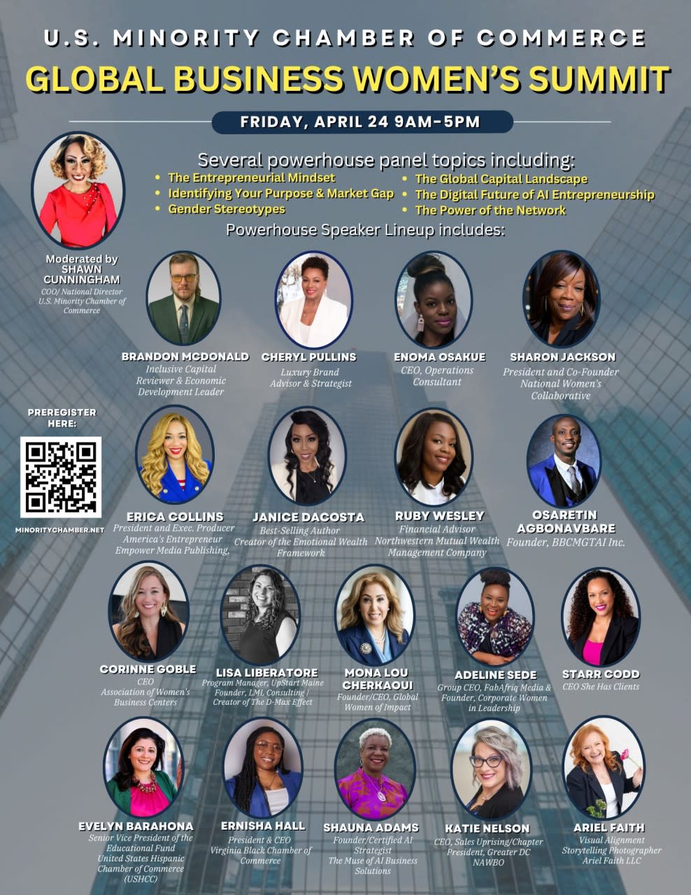 Join women leaders, innovators, and entrepreneurs from around the world for the Inaugural Virtual Global Business Women’s Summit, hosted by the U.S. Minority Chamber of Commerce. This full‑day global gathering is designed to strengthen female leadership, expand economic opportunities, and foster international collaboration across industries. The summit features keynote speakers, high‑level leadership panels, business development forums, and international matchmaking sessions, all focused on empowering women to scale their businesses, embrace innovation, and lead with impact. Topics include professional development, entrepreneurship, global markets, finance, human development, and the transformative role of artificial intelligence. We are proud to share that Ernisha Hall, President & CEO of the Virginia Black Chamber of Commerce, will be in attendance and speaking as part of this powerhouse lineup of global women leaders. Her voice and expertise will contribute to the summit’s mission of elevating women in business and shaping the future of inclusive economic growth. This event offers a unique opportunity to learn, connect, and build meaningful partnerships with leaders across the public and private sectors, right from your screen.