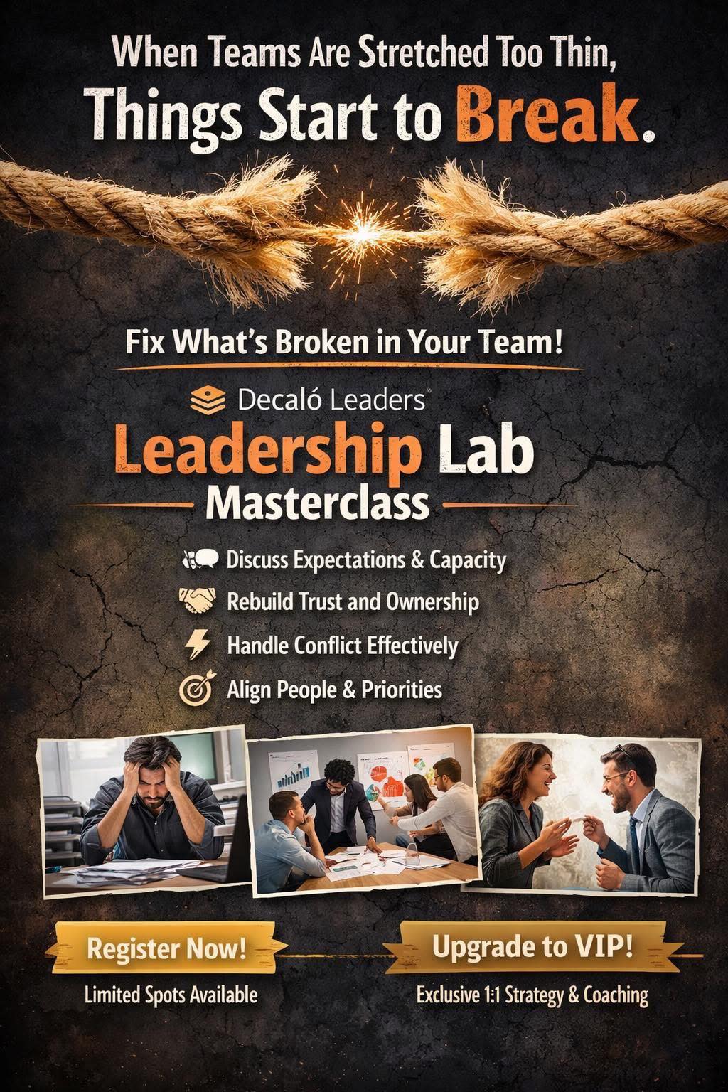 Discover your leadership gaps and gain practical strategies to increase team performance, accelerate productivity, and boost results. This high‑impact session equips you to build trust, inspire engagement, and strengthen your team culture — fast. Connect with fellow leaders facing similar challenges and leave with tools you can apply immediately.