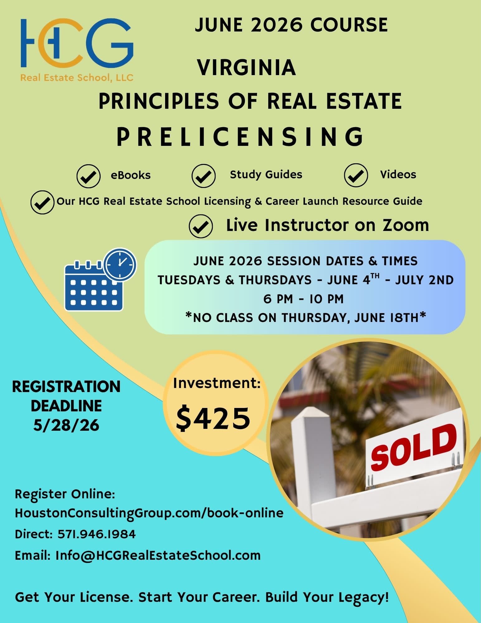 June 2026 Virginia Principles of Real Estate Pre-licensing Course