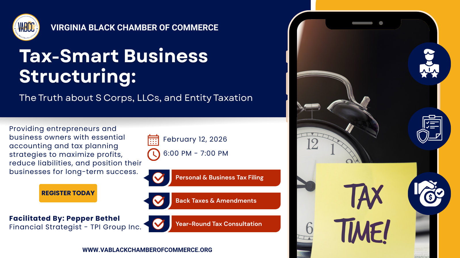 This business development webinar is designed to equip entrepreneurs and small business owners with practical accounting and tax planning strategies that support long-term growth, reduce unnecessary liabilities, and strengthen overall business operations. Participants will learn how accurate financial reporting, intentional planning, and the right business structure work together to improve profitability and protect business assets.